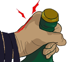 Popping the lid off of the beer with his teeth, spitting it away to the side and taking a desperate, hard swig, he gets to business, breath held with a tension reminiscent of a battlefield surgeon.]